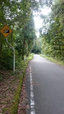 いつの間にか湖から離れ、黄金に実った一面の田んぼの中を進んでいる。で、急に暗い山に入ったかと思うと、そこから心細い林道になる。そして、また激坂。まったく湖の気配を感じない、うす暗い森の中を、ゆっくりゆっくり。長いよ、この登り。自分がペダルを漕ぐ音に、ときおりどんぐりが落ちてくる乾いた音が合わさる。どこまで続くの、って思った頃にやっとピークを超えてさっそうと下る・・・が、油断大敵。また登りかよ。さっきと同じように山の中の曲がりくねった登りが、延々続く。やっとこさピークに達して、郡山市に入る。この山の区間は6キロ位。まったく湖は見えないけれど、車とは一台もすれ違わないし、森の匂いがすがすがしいし、猪苗代湖一周の中では印象的な区間だ。ちょっとしんどいけどね。