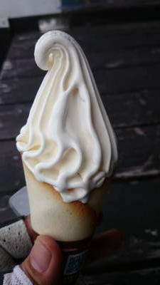 ラーメンを食べると、どうしても食べたくなるのが甘いもの。で、途中の野口英世記念館近くで。「プレミアム生クリームソフト」。なんだけど、値段を見てびっくり。だって500円!もするんだものね。確かに生クリーム使ってるんだろうけど、普通のやつのほうが好き。もちろん美味しいんだけどね。僕には濃すぎる。