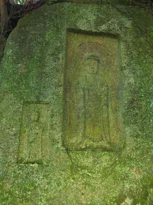 いやはやこれはすばらしいものでした。崖に埋め込まれたようなあんばいの、人が二人すっぽり入ってまだ余るくらいの大きさの岩に、仏が2体彫り出されています。大切にされているらしく、あたりはきちんと掃き清められていて、お供え物や千羽鶴が置かれています。とにかくその柔和な表情に魅せられてしまった私はしばらくここで時を過ごします。阿対(あたや)の石仏。その石仏の隣にもう一体仏が安置されていて、子供ができない人が豆腐をお供えして拝むと子宝に恵まれるんだとか。実際に豆腐(中身は入ってませんでしたが)のパックが一つ置いてありました。子供と豆腐の関係がよく分かりませんが、なにか民俗学的な意味がありそうな気がします。