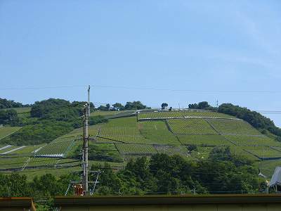 山の斜面を利用して、ブドウ畑が広がります。このへんは葡萄の産地なんです。そして、ここで採れる葡萄を利用して、