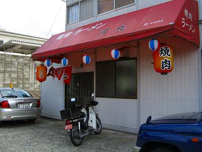 県道29、県道5と山の中を北へ向かい、中国道の千代田インターチェンジが見えてきます。北広島町。ここらへんで昼食。はい、例によってラーメンです。R261付近で、ちょっと国道から入ったところにあった、焼き肉とラーメンの店。河九。おいしそうな雰囲気でしょ?焼き肉とラーメンラーメンを出す店はおいしいところが多いという、自作理論を信じて入ります。