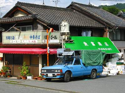 そのまま国道を進みますと、吉野川にぶつかります。その手前の町下市の町並み。国道に沿って古い町が続きます。