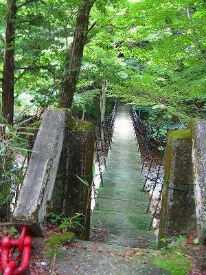 登山道の入り口に小さな吊り橋がかかっています。しかし、その横にはこんな看板。