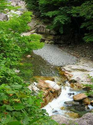 169号線から309号線に入って約40分。やっと人の姿を見ます。一帯はみたらい渓谷と言われているようで、川は複雑に侵食された美しい岩々の間を流れていきます。でもゆっくり眺めている暇はない。もう6時前。ここを過ぎると道幅は広くなって、天川村。休日なんかはわんさと家族連れがやってくる観光の村。