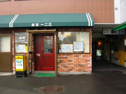タクシーやいろんな地方のナンバーをつけた車でごった返す青森駅前のロータリーを抜けて、さあ・・・???え、ない?ぼうぜんとします。近づいてみると「喫茶一二三」?なんじゃこれは。落胆の色は隠せませんが、とにかく店の前にカブ君を停めますと、「以前の一二三食堂のままやってます」という張り紙。外にむかって張り出してあるメニューも多分前のまま。