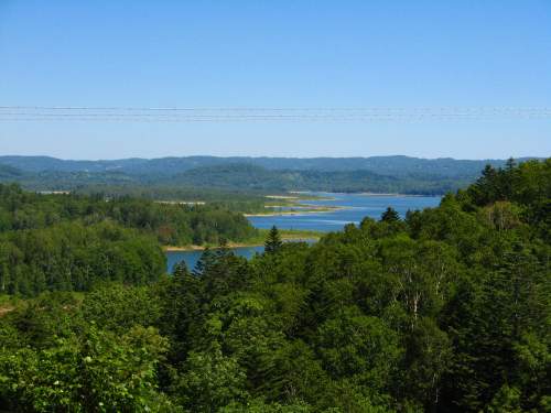 そんな所を通り、美深峠を越えると、朱鞠内湖が姿を現します。日本で一番面積の広い人造湖。といっても、あまりに複雑な形をしていて、湖を一望できるところはありません。パーキングに停めて休憩。