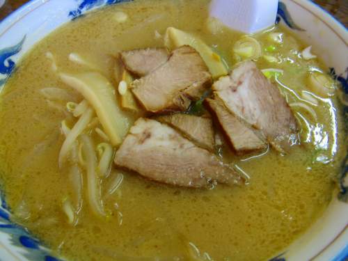さあ、今日はこの辺で泊まる場所を探しましょうか。とりあえずラーメンを食べに(笑)旭川まで降りてきたので、ラーメンをすすりながら、このまちの真ん中と言ってもいい場所にある神楽岡公園のキャンプ場に決めました。ちなみにのれんがおいしそうだと誘ってきたこのラーメン、極上のみそラーメンでした。