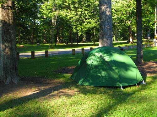このキャンプ場は市民が集う公園の中にあって、無料で使えます。町中にこんな公園があるのはいいですねえ。多分遊歩道のところなんか、ほとんど手を加えていない林なんじゃないでしょうか。