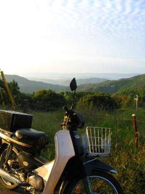 例によって河内の国、とある駅の駐輪場でキーをひねるとcub君のエンジンはすとんと静かになります。時刻は19時30分。走行距離380キロ。15時間の楽しかったツーリングの幕を、この辺で降ろすことにしましょう。