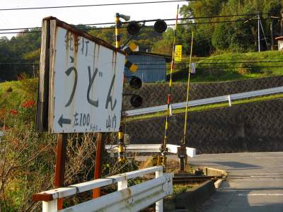 金毘羅さんの琴平も今日は素通り。財田町に入ると、県道を左折。この標識を目印に踏切を渡ると、急坂の山道があって、あれれと不安になる前にもうその坂を昇りきると・・・。