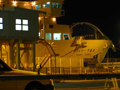 夜の国道192号線を東へ向かってひた走ります。さっき出てきた、うだつの町、脇町なんかも通りながら7時過ぎの和歌山行フェリーに乗る算段。だいぶ前について、かつおのたたきの代わりに、あわよくば有名になった徳島ラーメンでもすすってやろうという魂胆でしたが、なんということ、3連休初日の夜ということもあってか、徳島に近づくにつれて車は増え、市内は渋滞。フェリー乗り場に着いたのはもう出港10分前。