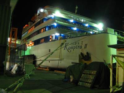 一時間以上待合室で待って、やっと乗船開始。二等の枡席へ転がり込みます。すぐにタオルを顔にかけて就寝。あっと言う間・・・でもなかったんですが、高松入港。港に降り立つと5時前です。まずは、駅前へ。