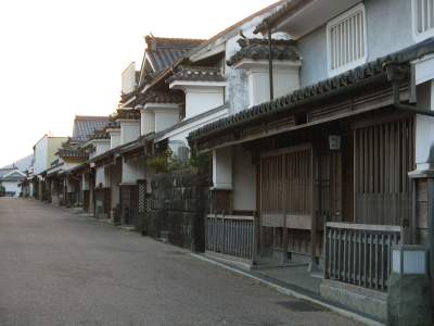 ますます南国的な様子を見せるR55を少し走りますと、ありましたありました。ちょっと立ちよってみたかった町、吉良川。ひょいと旧道のほうへ入りますと、おお、聞きしにまさるみごとな町並み。この辺は雨が多いので、壁のしっくいを守るために「水切瓦」なるものが発明されて、しっくいを長持ちさせることに成功しているそうです。