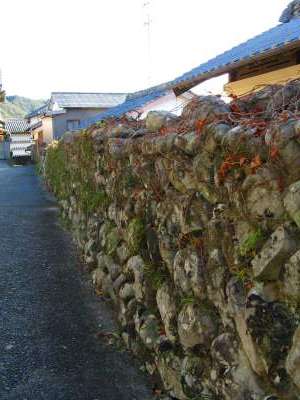 またこのあたりは、台風銀座とも呼ばれる台風の通り道に当たるため、「いしぐろ」と呼ばれる石積みの塀が家を囲んでいるのを目にすることができます。水切瓦、そしてこの「いしぐろ」が、独特の景観を形作っているのです。年越しの準備に忙しいのか、わりと人通り、車通りがあります。立ち話をするおばあさん。買い物帰りのおじさんの自転車があいさつを交わしながら通り過ぎます。活動する町という雰囲気がとても好もしいものです。