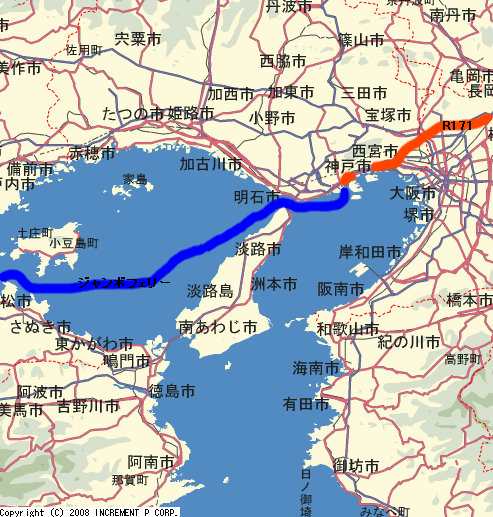12月27日土曜日朝、仕事だの塾だのと、慌ただしく家族が出払ってしまい、しんと静まり返る家で、おごそかに出発を決定。うやうやしく地図を取り出して来て、ルートの検討開始。もう昼前だから、今から出発しても中途半端。夜出発か、それとも明朝早くか?なるだけ早く旅に出たいではないか、そう、夜がよかろう。選択肢はほぼ四つ。1、和歌山を深夜に出る南海フェリーで早朝の徳島に乗り込む。2、こないだ乗り逃がしたジャンボフェリーで高松へ。今回は、昔讃岐うどんを食べにいくのによく利用した、深夜0時45分に神戸港を出て、5時前に高松に着く便を利用。3、岡山までcub君自走、宇野から高松へ一時間の船旅。4、尾道まで走って、そこからしまなみ海道で今治までしばしの海上散歩。