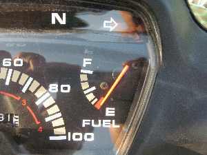 今までにましてそろそろと。急加速はご法度。きれいな夕方だったんですが、もう省燃費運転だけに専念。時間がものすごくゆっくりすぎていきます。だんだん人家が増えて来て、おおっガソリンスタンド発見。すでに閉店しかけています。店員さんがロープで、入れないように店じまいしているところに大声で呼びかけると・・・にっこりしてOKのサイン。ああ、助かった。