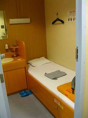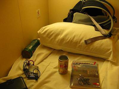 今日の船室は2等なんですが、Aクラスといってなんと一人部屋。インターネット割り引きをいれると、cub君込みで10000円ちょっと。これは安い。昨日の関西汽船は、ゴールデンウイーク中の割り引きなし。2等寝台で15000円ちょっとと比べると、かなりのお得感ですね。こっちのほうが競争が激しいということもあるでしょうが。