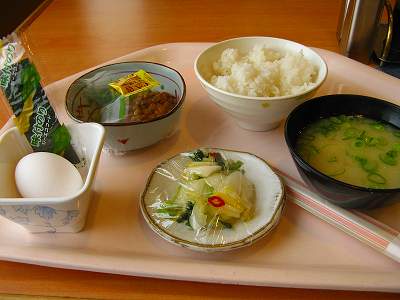 翌朝。いつも通り5時には目覚めます。高くつくのでいつもは船内では食べないんですが、珍しく船内レストランで朝食。一刻も早く阿蘇へ向かいたいという気合ですね(笑)。