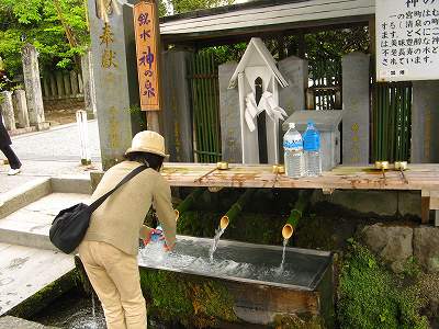 いやあ立派な門でしょう。細川氏が贅を尽くして建てたものだそうですよ。地下水がじゃんじゃん湧いています。手を清め、口を漱ぎ、ついでにごくごく飲んでみます。まろやかで口当たりよく、とてもおいしい水でした。