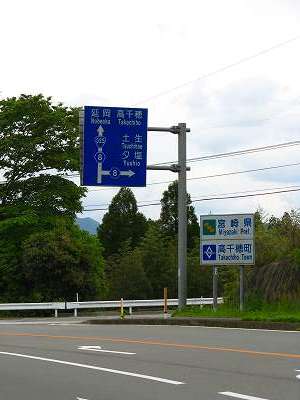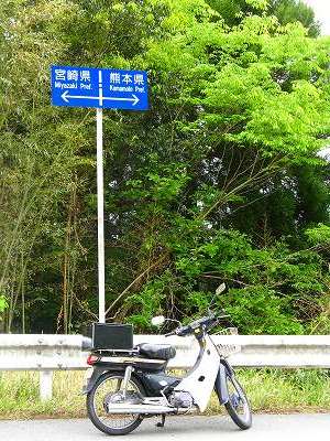 さて、分岐を左、高千穂方面へタイヤを進めます。もうすぐ宮崎県。山の中の走りやすい道を何分か快調に走ったあと、大きく輪を描きながら高度を下げていきます。そこが熊本と宮崎の県境。ぐるんと大きく回るので、いったん宮崎県に入ってまた熊本県へ。最終的にはもちろん宮崎県で決着です。