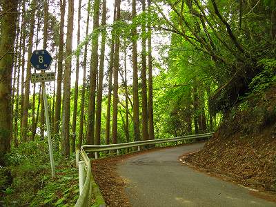 この道は、バイクの地図でお薦めになっているだけあって、すてきな道です。車どおりは少ないし、cub君にはちときつすぎるアップダウン、そしてうねうねとしたワインディング。