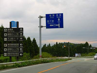 県道8号線を通るのではなく、平家の落人伝説で有名な椎葉村へ続くR265で再び高森へ。まだ合羽を着るほどではありません。しかも高森につくと止んでくれましたよ。ほっ。