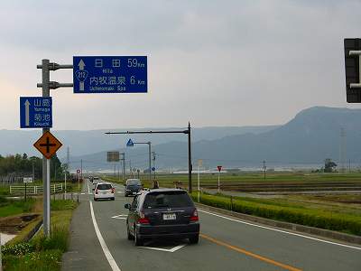 パソコンのディスプレイを難しい顔付きで見つめる私。このところ毎日の儀式です。日に日に険しい表情に(苦笑)。というのも、ゴールデンウイークで自由になる日、5月3日に阿蘇を走ろうとフェリーを往復予約したのに、連休のうち、よりにもよって三日だけお天気が崩れるぞよとのご託宣が出ているから。いよいよ前日になってもやっぱり阿蘇のあたりは雨マークが消えません。「雨は蕭々と降っている」なんて詠えばいいじゃないの、と同僚に励ましとも慰めともつかない言葉をいただいて、日が傾き始めた南河内を出発。