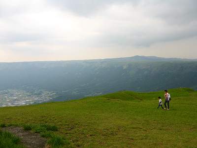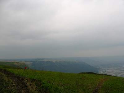 その草原の中を走るうちに上りになり、いよいよ阿蘇の外輪山にさしかかります。しかし、この規模の大きさ。外輪山の周囲はゆうに100キロメートルを越えてます。しかも、実際に走ってみて分かりましたが、内側のカルデラの広いことといったら。人口は数万人だそう。後から、またつぶさにその様子を見ることになります。