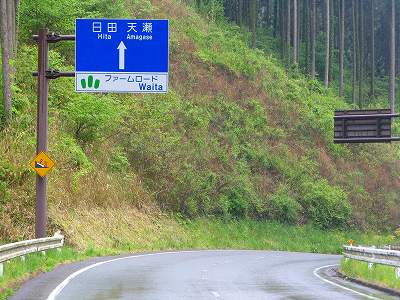 駐車場に戻ると、もう、そぼ降るなんて状況じゃなくなりつつあります。あわてて合羽を着込み雨支度。ほどなく音をたててやってきました。でも、あとはもう北を目指すだけ。R212で、小国へ、そこからR387、そして、地図でお薦めの「ファームロード」と進みます。