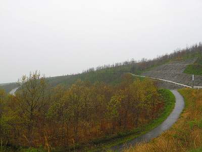 写真で分かりますでしょうか、その感じが。ずうっと道が左上のほうに続いて、そしていったん降りて、再びのぼっているでしょ?びちょびちょ降ってくる雨のなか、それでも爽快な走りを楽しむことができました。雨のおかげで土の匂い、木や草の匂いがことさら強く感じられます。体の中からきれいになるような匂いです。