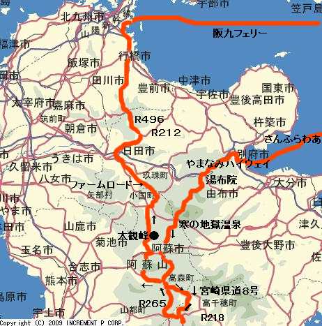 実は、その気合の向こうにあったものは、阿蘇を越えて、宮崎県の方へ入ってみようかという気持ちなんですよ。すでに鬼籍に入って久しい伯父は小学校の教員でした。その昔、もう30年以上前のことになりますが、毎夏父の故郷に帰省していたおり、その伯父に連れられて、当時伯父が赴任していた、熊本県境の小さな町、五ヶ瀬町のそのまた山奥の小さな小さな小学校に行ったことがあります。おりしも登校日。一緒に教室に入らせてもらって、多分記憶に間違いなければ、全校の児童十数人、一つの教室に複数の学年の子供がいる、複式学級の小学校を体験したんでした。普段通っている学校とは同じものとは思えない世界。複式学級。映画に出てくるような山の中の小学校。忘れることのできない一日。せっかく阿蘇まで行くんなら、ひとあし延ばしてその場所をぜひまた見てみたい、そういう気持ちです。
