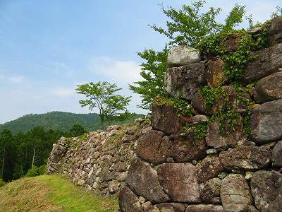だれもいない高台をゆっくり回りながら山の風景を楽しみます。棚田の三分の一くらいはすでに耕作が放棄されています。うぐいすが何羽もいて、ほんの近くで鳴くかと思えば、それに呼応するかのように遠くから谷渡りが響いてくる。山に反響するのか、いくぶんエコーのかかった、でもとてもはっきりした声。目の前にはトンボが群れてもいます。偶然みつけたお城だけれど、心に刺さっているざりざりとしたささくれが、すうっと融けてゆくような、そんな気分を味わいました。どういったらいいのか、それは、やわらかくて気持のいいものに包まれているといった感覚。余計な力が抜けていくといった感覚。そんな感じでしょうか。