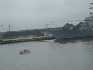 昨日、仙台港を出るときに、星条旗をはためかせた軍関係と見られる船を発見。