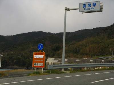 で、痛む頭をちょっとだけ働かせて、今日のコースを考えます。もう、佐田岬なんて無理、無理。しかも、まだ寒波が続いているということは、やっきになって乗る必要もないじゃない、と勝手に合理化しておいて、途中の主だった街を見ながら、のんびり今日の宿泊地大洲を目指すことにします。