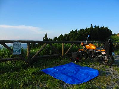 サンダルと同じ理由で。バイクを運転しているときの服装っていうのは重苦しいの一言。でも体を守ってくれているんだから文句は言えない。ただ、キャンプ場で落ち着くときに体が自由に動かしにくいというのは、ただでさえ狭いテントから出たり入ったりするのに快適ではない。だから、夏ならハーフパンツか薄いジャージを持っていく。 | |