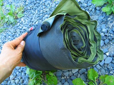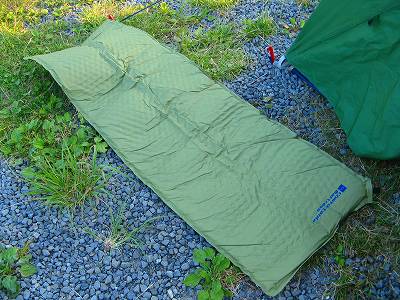 キャンプ用の小さなものを売っているが、私の場合、脱いだズボンでポーチやリュックをぐるぐる巻いて、はいでき上がり。 | |