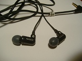 | 使用機 | ちょっと奮発して、shureというアメリカの会社のやつを使っている。何種類かあって、値段も全然違う。この写真のやつがいくらかということは、ええとごにょごにょごにょ。このイヤフォンは耳の中にぐいぐいねじ込んで使う。最初は、ええ?こんなに入れていいの?って思うのだが、そうしないと低音が出なくなってしまう。でも、ちゃんと装着したら本当にごきげん。なんといってもイヤフォンごときにこんなに出せないとおっしゃる声も聞こえてきますが、私は、通勤の時も毎日これをつけていますので、もったいないってこともない。 →これも断線して使えなくなってしまった。 |