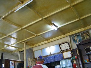 出てきたカツカレーを食べ終わった頃に、一人いなくなりまた一人、と店の客は私たちだけになりました。そこで、おかみさんにこの店について質問。「建物もやってる者も古いよ」なんて言いながら、いろいろ昔の話を聞かせてくれました。もう、かなりのお年のようです。