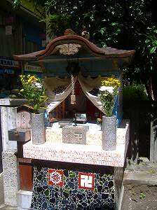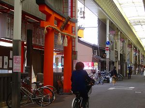ちょうど、商店街の真ん中当たり、突如大きな鳥居が。その鳥居をくぐって横に入ると、なにやら由緒正しげなお社が。入り口の由来を読むと、ここは八坂神社のお供社というらしい。その起源は、平安京が疫病に襲われた896年、その原因だとされた怨霊を払うための儀式で、その時に今の八坂神社から神輿を迎えたことにさかのぼるらしい。今でも、祇園祭「還幸祭」では、この神社から八坂神社まで神輿がかつがれるようです。昔の流行病と言えば、それは恐ろしかったでしょう。ばたばた人が倒れていくんすから。今は、平和な商店街のなかにひっそりとたたずむこの社には、天に祈るしか手がなかった人の、強烈な思いが込められている訳です。何げない場所に、思わぬ歴史が垣間見えます。これこそ、京のそぞろあるきの醍醐味。