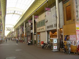 多分観光の人は目もくれないような、ごく普通の商店街です。車は通らないし、そこそこの幅があるから自転車の天下。洪水のようにとは言わないけれど、急流を流れてくるゴミのように(失礼)びゅんびゅん脇を通り過ぎられるので、うかうか店の様子を写真に撮ったりしていると、ひどい目に遭いそうです。なんちゅうか、この自転車にはよく悩まされますねえ。大体歩道では歩行者が優先なんでしょうけど、そんな常識はどこ吹く風、ギリギリのところを速度をゆるめもせずにひゅんっと過ぎるは、当たりそうと思ったのか直前で急に進路を変えるは、じりじりじゃんじゃん後ろからベルを鳴らすは、文字どおり傍若無人。自分で自転車に乗る時はけっこう歩行者には気を使っているつもりの私は、ちょっとご立腹なされています。