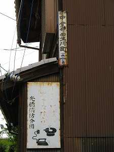 レトロな看板。左の図柄はパソコンかと思いきやアイロンでした。