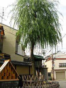 そこから南へ歩くこと10分あまり。島原の大門と、その前にある柳が見えてきました。この大門は、慶応年間に立て直されたものらしいですが、町の中にいきなりこんな門があるとやはりびっくりしてしまいます。なお、樋口一葉のたけくらべにも出てくる、江戸は吉原の大門前の見返り柳は、ここの柳をまねて植えられたものだそうな。