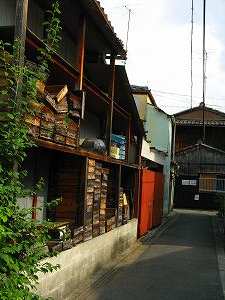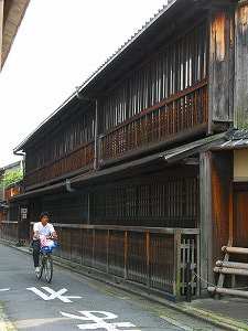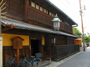 ここ島原は明治以降は衰微していったらしく、今なお当時の風情を残す建物はあまりありません。角屋と輪違屋くらいかもしれません。なお、この門のきわに、表面の字が摩耗して読めなくなるくらい古めかしい石造りの水ためと、そのうえに、きれいに重ねられた水桶が置いてあります。これは、その昔島原で火事が起こった時に、大門がぴたりと閉ざされており、数多くの遊女たちが逃げられずに亡くなってしまったことがあってから、このようになったといいます。
