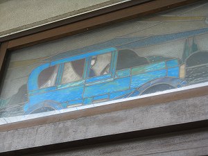 富士ラビットのステンドグラスと、建物