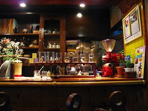 その市場のなかに「ナス」はあります。ここも小さな喫茶店ですが、静かにジャズが流れ、ぴしっと背筋の伸びた姿勢の良いマスターが、注文が通るとサイフォンで珈琲をたて、テーブルでカップに注いでくれます。ジャズに耳を傾けながら、ぼんやりコーヒーを飲むとふうっと肩の力が抜けていくような、すてきな店。洋食もやっているから、食事時に来てもOK。私は、新聞にも紹介された、カツカレーが好きです。