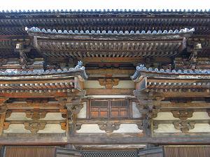 金堂にいらっしゃる、薬師如来。その台座を十二神将が輪になって支えています。十二神将は、薬師如来の眷属で、サンスクリット語由来の不思議な名前が付いています。新薬師寺のものが有名ですね。ここのは、おやおや、正面から見て、右下の神将、名前は分かりませんが、おもしろいポーズ。左手を目の上に上げて遠くをぐっと睨めつけている。悪い奴を見張っているのでしょうか。ユーモラスな体の表情に、本尊の薬師如来の陰が薄くなって(苦笑)。これを彫った仏師は罪作りなことをしたもんです。いや、私だけですか。そんなところばかり見て感心しているのは。もっとアップで見たいんですが、わりと遠いので、薄暗い中ではなかなか微妙な表情まで見分けることができません。残念。