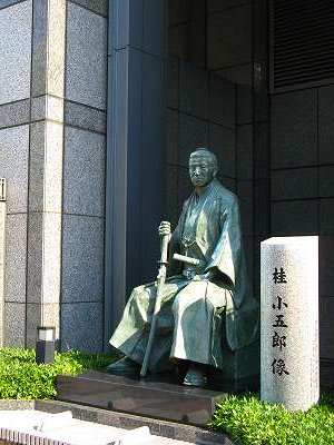 そして道を挟んで反対側には巨大なホテルオークラ。その土地は元長州藩の屋敷があったところ。桂小五郎がじっと遠くを見つめています。