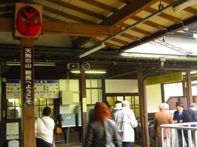 昨日の秋晴れとはうってかわって冷たい雨のしょぼしょぼ降る日曜日、同居人とともに降り立ったのは叡山電車鞍馬駅。京阪電車の京都方終点、出町柳駅から30分ほどちっちゃな叡山電車に揺られるとたどりつきます。