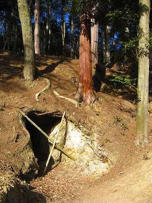 最近までずっと荒廃していたのを、宗派で少しずつ整備して、公開にこぎつけたということですが、まだその途上といった趣です。逃げ道のトンネルの奥には、江戸時代の有名な陶芸家仁清のものだと伝わっているちいさな墓もあります。
