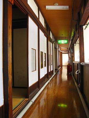 こうやって、19時間もかけてほうほうの体で到着した宿は、鳴子温泉「姥の湯」。源義経が産湯をつかったという伝説があるところだとか。鳴子は源泉の数が別府に次いで日本で2位だということですが、ここも自家源泉を四つ持っており、一つは湯治の客は使えませんが、それでも三つの湯に入り放題。硫黄泉、芒硝泉、単純泉。決して広いわけじゃありませんが、ちょうど湯の量にあった大きさの湯船で、だからじゃんじゃん掛け流し。部屋も実に雰囲気のある所です。黒光りする廊下に障子が並び、とても落ち着きます。隣の部屋とは襖でしきってあるばかり。イギリスの旅行家、イザベラ・バード女史が、明治初期の東北の町を巡って書いた日本奥地紀行では、珍しい西洋人が宿屋にいると聞いて村人達が宿を取り巻いてしまったという記述をよく目にします。それはこういう雰囲気の宿だったのかと思います。ふと気づくと障子の穴が一つまた一つと増えてきて、そのむこうから好気の目がじっと覗いていたそうな。もともと個室をはっきり分ける生活をしてきた欧米人からすると、そのプライバシーのなさはさぞしんどかったでしょう。(たしかそんなことが書いてあった)そして今、日本だって同じことになってきています。もっとも自分の場合、学生時代に住んでいたアパートが、うすいうすい、指で押せばぺこんと凹むような壁で隣と隔てられていただけの部屋だったので、隣の息遣いを感じながら過ごす懐かしさを感じたことでした。